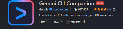 搜索并安装 Google 官方出品的插件:Gemini CLI Companion。