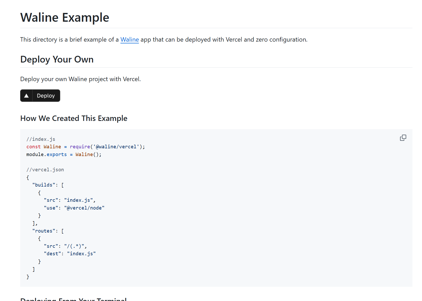 进入waline的github网站后点击下方图片中的Deploy,为其在你的 GitHub 中创建一个私有仓库(比如命名为 waline-comment-api)。